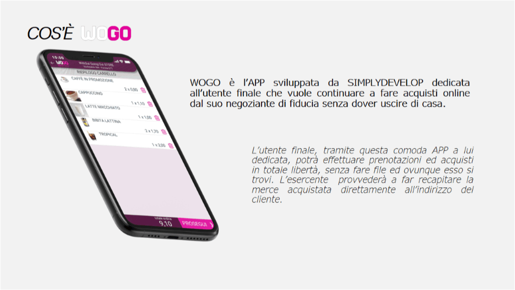 Basta aderire alla piattaforma WOGO, definire quali categorie di prodotti mettere in vendita, pubblicizzare il proprio link WOGO STORE sui canali social o stampato come qrcode. I tuoi clienti potranno creare facilmente un ordine ed interagire direttamente con te, da casa o da lavoro.
